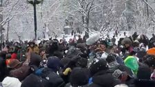 In New York geriet eine zunächst harmlose Schneeballschlacht aus dem Ruder. Irgendwann musste die Polizei anrücken. Die Beamten kamen dann schließlich selbst unter Beschuss.