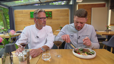 Für den Hauptgang kommt Stefan und unterstützt Thomas bei seiner Art des Muschelsuds. Mit Heilbutt und frischen Curry wird gekocht. DIe Zusammenstellung des Gerichts ist auf jeden Fall was für den feinen Gaumen und auch Stefan ist beeindruckt.