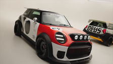 Die äußere Erscheinung ist eine Hommage an die die Motorsport-Gene der Marke MINI. Jedes Charaktermerkmal wurde sorgfältig ausgewählt mit Fokus auf Funktionalität und Emotionalität. Prägnant ist die rot-weiß-schwarze Lackierung mit markanten Akzenten und der Deus-Schriftzug am Heck. Die klassischen, verbreiterten Kotflügel folgen der Tradition der Rennsport-Ästhetik und -Funktionalität. Die vier zusätzlichen Scheinwerfer auf der Motorhabe sind eine Hommage an den Rallyesport. Die maßgefertigten Leuchteinheiten sind hochfunktionale Beleuchtungssysteme, die dem Fahrzeug seinen unverwechselbaren Ausdruck verleihen und haben in den Leuchten jeweils ein kleines DEUS Branding. Der Heck-Diffuser ist inspiriert vom MINI JCW Rennwagen auf der legendären Nordschleife. Er kanalisiert nicht nur den Luftstrom unter dem Fahrzeug für eine optimale Stabilität, sondern trägt auch die Verbindung zu einer der anspruchsvollsten Rennstrecken der Welt in sich. Der Auspuff wurde als zentrales Gestaltungselement in den Diffuser integriert. Diese Lösung optimiert die Aerodynamik und macht den Motor akustisch und visuell erlebbar.