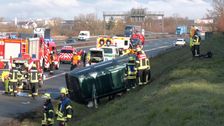 VW-Bus mit achtköpfiger Familie überschlägt sich auf der A3 bei Erlangen - sechs Kinder verletzt
