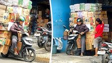 Bis zum Anschlag beladen: Rollerfahrer kämpft mit turmhohen Kartons