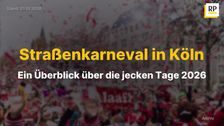 Höhepunkt der Karnevalssession ist der Straßenkarneval vom 27. Februar bis zum 4. März 2025. Das Motto in diesem Jahr lautet: „ALAAF – Mer dun et för Kölle!“. Weiberfastnacht, 12. Februar 2026 Um 11:11 Uhr wird der Straßenkarneval eröffnet. Auf dem Alter Markt sind neben Oberbürgermeister Torsten Burmester und dem Kölner Dreigestirn auch Live-Acts dabei. Am Chlodwigplatz wird traditionell das Historienspiel „Jan und Griet“ aufgeführt. Karnevalsfreitag, 13. Februar 2026 Highlight des Tages ist der Sternmarsch der Kölner Veedelsvereine. Die Jecken ziehen von den umliegenden Plätzen auf den Alter Markt. Karnevalssamstag, 14. Februar 2026 Auf dem Neumarkt veranstalten die Roten Funken ihr Biwak mit einem Bühnenprogramm. Um 10 Uhr geht es los. In vielen Stadtteilen ziehen Umzüge durch Straßen. Karnevalssonntag, 15. Februar 2026 Um 11:11 Uhr beginnen die Schull- und Veedelszöch, von der Südstadt durch die Innenstadt geht es bis in die Stolkgasse in der Altstadt-Nord. Rosenmontag, 16. Februar 2026 Der Höhepunkt des Straßenkarnevals ist der um 10 Uhr beginnende Rosenmontagszug. Etwa 3,5 Stunden ziehen die Jecken vom Chlodwigplatz über den Neumarkt und Rudolfplatz am Kölner Dom vorbei bis zur Gregorius-Maurus-Straße. Veilchendienstag, 17. Februar 2026 Erneut ziehen Umzüge durch die Stadtteile. Am Abend findet die Nubbelverbrennung statt: Vor vielen Kneipen wird dabei eine Strohpuppe verbrannt.