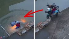 Eine Überwachungskamera in der chinesischen Provinz Zhejiang filmte am 20. Januar den dramatischen Moment, als eine Rollerfahrerin die Kontrolle verlor und in einem Kanal landete. Zum Glück waren aufmerksame Nachbarn sofort zur Stelle.