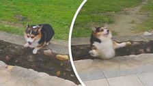 Sprung wird zum Reinfall: Mutiger Corgi legt süßen Fehltritt hin