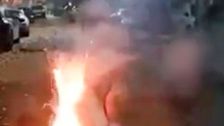 Schockierendes Filmmaterial zeigt einen Mann, der Verbrennungen erleidet, nachdem er versucht hat, ein Feuerwerk zwischen seinem Gesäß in Birmingham, Großbritannien, zu starten. Die Rakete explodierte auf der Stelle und hinterließ böse Verbrennungen, während die Zuschauer über das Missgeschick lachten. Die Behörden warnen, dass Feuerwerkskörper gefährlich sind, mit Vorfällen, die 2024/25 um 42 % steigen, und betonen, dass sie nur von Erwachsenen sicher gehandhabt werden sollten.