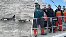 Vor der britischen Küste wurden Orcas gesehen, die um ein Fischerboot herumtollten