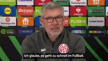 Mainz 05 gewann das Conference-League-Hinspiel knapp mit 2:0 gegen Strasbourg. Trainer Urs Fischer will sich noch nicht entspannen und verweist auf Bodo/Glimts Ausscheiden in der Champions League.