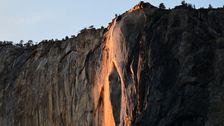 Im Yosemite-Nationalpark verwandelt sich ein Wasserfall in einen glühenden Feuerfall. Zahlreiche Besucher sind gekommen um das seltene Naturspektakel zu sehen.