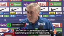 Brasiliens Nationaltrainer Carlo Ancelotti ist überzeugt, dass seine beiden Real-Madrid-Stars Vinicius Jr. und Rodrygo auch in der Seleção harmonieren können. Beide seien in guter Form.