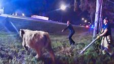 In Hilliard im US-Bundesstaat Ohio mussten Autofahrer auf einer Interstate Geduld haben: Eine Kuh namens Marigold war während eines Transports entkommen – auf Polizisten wartete harte Arbeit.
