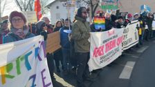 Rund 350 Demonstranten protestierten am Sonntagnachmittag gegen den Kommunalwahlkampfauftakt der AfD in Kienberg im Landkreis Traunstein.