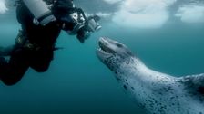 Seeleoparden leben in den eisigen Gewässern der Antarktis und begegnen nur selten Menschen. Dennoch kam es bereits mehrfach zu gefährlichen Zwischenfällen mit Forschenden. Im Jahr 2003 wurde sogar eine britische Wissenschaftlerin von einem Seeleoparden getötet. Trotzdem sind die riesigen Robben keine kaltblütigen Killer. Faszinierende Aufnahmen eines Forschers zeigen, dass die Tiere gegenüber dem Menschen auch verspielt und neugierig sein können.