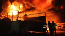 Flammen-Hölle zerstört Fabrikgelände in Indonesien