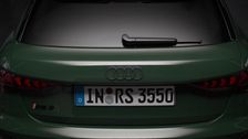 Mit seinem voluminösen Singleframe, der optisch eine Einheit mit den großen seitlichen Lufteinlässen bildet, und dem markanten Frontsplitter steht dem Audi RS 3 Sportlichkeit ins Gesicht geschrieben. Der RS 3 competition limited zeigt nun nochmals gestraffte Züge und seine Einzigartigkeit durch ein Badge in Heritage-Farben im Singleframe sowie am Heck. Er setzt auf ein expressives Design mit matten Carbon-Elementen: Dazu gehören je Seite zwei neue Flics, die seitlich der Front übereinander angeordnet sind und passend zu den vertikalen Blades der Air Curtains aus Carbon bestehen. Sie lassen das Sondermodell breiter wirken, ebenso wie die geteilte Spoilerlippe unterhalb der großen Lufteinlässe. Damit duckt sich der RS 3 competition limited tief und steht satter auf der Straße. In den Radhäusern drehen sich 19-Zöller in Neodymgold matt und sportlichem Zehn-Kreuzspeichen-Design. Außenspiegelkappen, Seitenschweller, Heckspoiler und die Spange oberhalb des imposanten, durchströmten Diffusors komplettieren die matten Carbon-Elemente im Exterieur. Sie geben dem RS 3 competition limited seinen technisch-kühlen Look. Diesen unterstreicht auch die partiell mattierte hintere Seitenscheibe mit dem Modellnamen. Darüber hinaus gibt sich die Edition mit abgedunkelten Matrix LED-Scheinwerfern zu erkennen, deren Tagfahrlicht exklusiv beim Öffnen und Schließen des Fahrzeugs die LED-Segmente entsprechend der Fünfzylinder-Zündfolge 1-2-4-5-3 aufleuchten lässt.