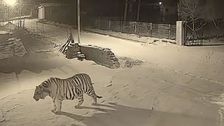 Riesiger Tiger streift durch Dorf und tötet Hund