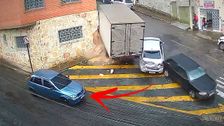 Dramatische Sekunden filmte eine Überwachungskamera im brasilianischen Bundesstaat Minas Gerais Ende November. Ein Auto war gerade in eine enge Kreuzung gebogen, als ein Lastwagen plötzlich auf den Wagen zurollte. Nur dank schnellem Handeln entging der Fahrer einem Unfall.