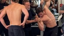 Herzerwärmender Moment: Arnold Schwarzenegger bringt seinem Sohn, das Posieren bei.