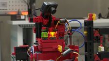 Nach einigen Fehlversuchen gelingt es dem Mann, die Spitze der Türme zu erreichen und ein perfektes Brett zu halten.