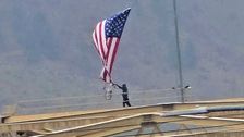 Rätselhafte Kletteraktion: Mann befestigt Fahrrad an US-Flagge auf hoher Brücke