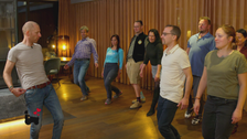 Bauer Markus lädt zum Salsa-Kurs und sorgt damit für ordentlich Bewegung bei den Teilnehmenden.