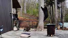 Zwei Schwarzbären drangen in Riceville im US-Bundesstaat North Carolina auf ein Grundstück ein. Doch die Raubtiere hatten nicht mit zwei mutigen Hunden gerechnet.