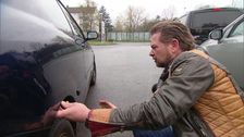 Det Müller sucht drei Autos für Drillinge. Bei einem Toyota Corolla wird der GRIP-Experte stutzig als er unter dem aufgeplatzten Lack Spachtelmasse sieht.