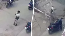 Ein Schuljunge entging nur knapp dem Tod, als während Straßenbauarbeiten in Ashok Nagar, Kurnool, am 27. Januar ein Strommast umfiel. Die Überwachungskamera zeigt Energietragende Drähte, die sich über die Straße schnappen, nur Sekunden bevor der Junge zurücktritt. Die Behörden leiteten eine Untersuchung ein, nachdem Anwohner sich über die Sicherheit beschwert hatten.