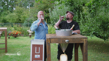 Handwerksmeister Steffen Döring und Reporter Tobias Ostler nehmen einen alten Holztisch auseinander und gestalten ihn neu. Mit Holz, Metall und Glas entsteht ein Stehtisch mit integrierter Kühlung – ein echtes Unikat nach dem Prinzip „aus alt wird neu“.