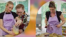 Die Nerven der Hobby-Bäcker:innen liegen blank: Jacquelines Eiweiß ist nicht mehr zu retten - 10 Minuten vor Schluss muss sie von vorne beginnen. Und auch Christian kämpft - seine Tarte löst sich nicht aus der Form. Zerbricht hier mehr als nur der Rand?