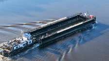Vor fast einem Monat ist der Buckelwal vor der Insel Poel gestrandet. Jetzt rückt ein schwimmendes „Aquarium“ an: Ein Lastkahn ist bereits in Wismar eingetroffen, nur wenige Kilometer entfernt. Damit beginnt die entscheidende Phase der Rettungsaktion.