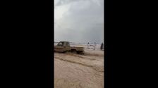 Saudi-Arabien: Heftiger Hagelsturm bedeckt Straßen und lässt Autos in Afif, Nadschd, festsitzen