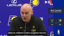Nach der 115:117-Niederlage gegen Milwaukee Bucks sieht man die Frustration des Pacers-Trainers Rick Carlisle. Dem Trainer bleibt nur, darüber nachzudenken, wie das Spiel anders hätte verlaufen können.