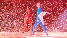 Beim Entscheidungs-Walk präsentieren die Models knallbunte und extravagante Kreationen des Labels MARCO. Das beeindruckende Set birgt Ablenkungsgefahr: Wer bewahrt im Konfettichaos die Ruhe? Wer meistert die Choreografie und das anspruchsvolle Timing?