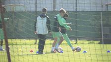 Die Bundesliga-Profis von Werder Bremen dürfen sich beim Aufwärmtraining kurz wieder wie kleine Kinder fühlen. Beim Eierlaufen mit Ball am Fuß stellen die Stars ihre Geschicklichkeit unter Beweis.