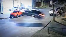 Eine rasante Verfolgungsjagd in der brasilianischen Stadt Belo Horizonte Ende September nahm einen dramatischen Ausgang, als ein Autodieb mit dem entwendeten Fahrzeug meterhoch in die Luft katapultiert wurde. Der Wagen schoss gefolgt von der Polizei über eine Kreuzung. Beamte verhafteten den Kriminellen später.