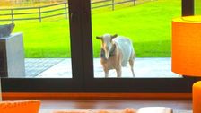 Kopf gegen das Fenster geknallt: Hungrige Ziege hat gar keine Geduld