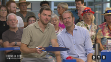 In der ersten Runde von "Strand in Sicht" müssen die beiden Teams verschiedene Fragen über Urlaubsländer beantworten. Beim "Check-In" geht es für die Bürohennen und die Weinfreunde einmal um die Welt: von Spanien bis nach Peru. Wer holt die ersten Punkte?