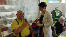 Hermann und Johanna Hertl aus Augsburg nutzen das Impfangebot in der Apotheke für Grippe- und Corona-Schutz. Die STIKO empfiehlt die Impfung besonders für Risikogruppen – doch in der Lindenapotheke lassen sich Menschen aller Altersklassen impfen. Solche Aktionen sollen helfen, die niedrige Impfquote in Bayern zu steigern.