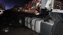Einsatz auf der A5: Zwei Lkw kollidiert - einer landet quer auf der Fahrbahn