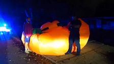 Zu einem wohl einmaligen Einsatz rückten Polizisten Anfang Oktober in der Stadt Parma Heights in Ohio aus. Ein gigantischer Kürbis machte die nächtlichen Straßen unsicher und behinderte den Verkehr. Beamten rangen die aufblasbare Dekoration schließlich nieder und brachten den Ausbrecher sicher zu seinem Besitzer zurück.