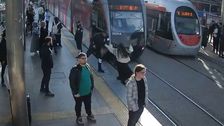 In letzter Sekunde: Sicherheitsmann rettet Frau vor der Straßenbahn