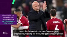 Trainer Arne Slot reagiert nach der 1:2-Niederlage gegen Manchester United mit Unverständnis, dass der Schiedsrichter das Spiel bei der schweren Kopfverletzung von Alexis Mac Allister nicht unterbrochen hat.
