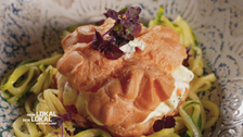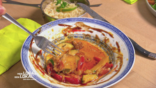Osama darf beim Hauptgang assisitieren. Es gibt Maishähnchen: Diese wurden mit Mais gefüttert weshalb das Fleisch Gelb gefäbrt ist. Freddies Geheimwaffe: Sein Kräuteröl. Dieses empfiehlt er auch gleich für Osamas Burritos. Wie schmeckts am Ende?