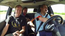 Matthias, Helge und Det treten in drei verschiedenen Elektroautos gegeneinader an.