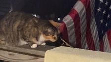 In Carmel im US-Bundesstaat New York stellte sich eine Gottesanbeterin einer neugierigen Katze entgegen. Das Haustier war vom Kampfgeist des Insekts sichtlich beeindruckt.