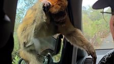 Jene war auf einer Tour zum Felsen von Gibraltar, als der hungrige Primat am Fenster des Fahrzeugs auftauchte, offensichtlich auf der Suche nach Leckereien. Der Affe setzte sich auf den Seitenspiegel des Autos, streckte sich durch das leicht geöffnete Fenster und schnappte sich schließlich einen Snack.