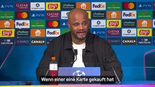 Nach dem 4:5 im Halbfinal-Hinspiel bei PSG spricht Vincent Kompany über seine Sperre. Das Zuschauen von der Tribüne sei „katastrophal“ gewesen, dennoch lobt er die Moral beim Comeback.