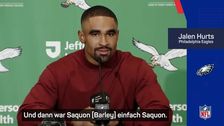 Jalen Hurts führte die Offensive der Eagles souverän gegen die New York Giants. Unterstützt von Saquon Barkley und Tank Bigsby erlief das Team 276 Rushing-Yards und sicherte sich den klaren 38:20-Erfolg.