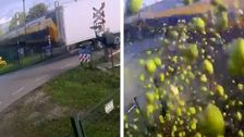 In Meteren in den Niederlanden blieb ein Lastwagen mit Birnen an einem Bahnübergang stecken. Dann kam ein Zug.