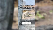 Eisbär Mika im Karlsruher Zoo ist nun ein Jahr alt. Klar, dass so ein Geburtstag auch gebührend gefeiert wird. Auch eine Torte darf nicht fehlen.